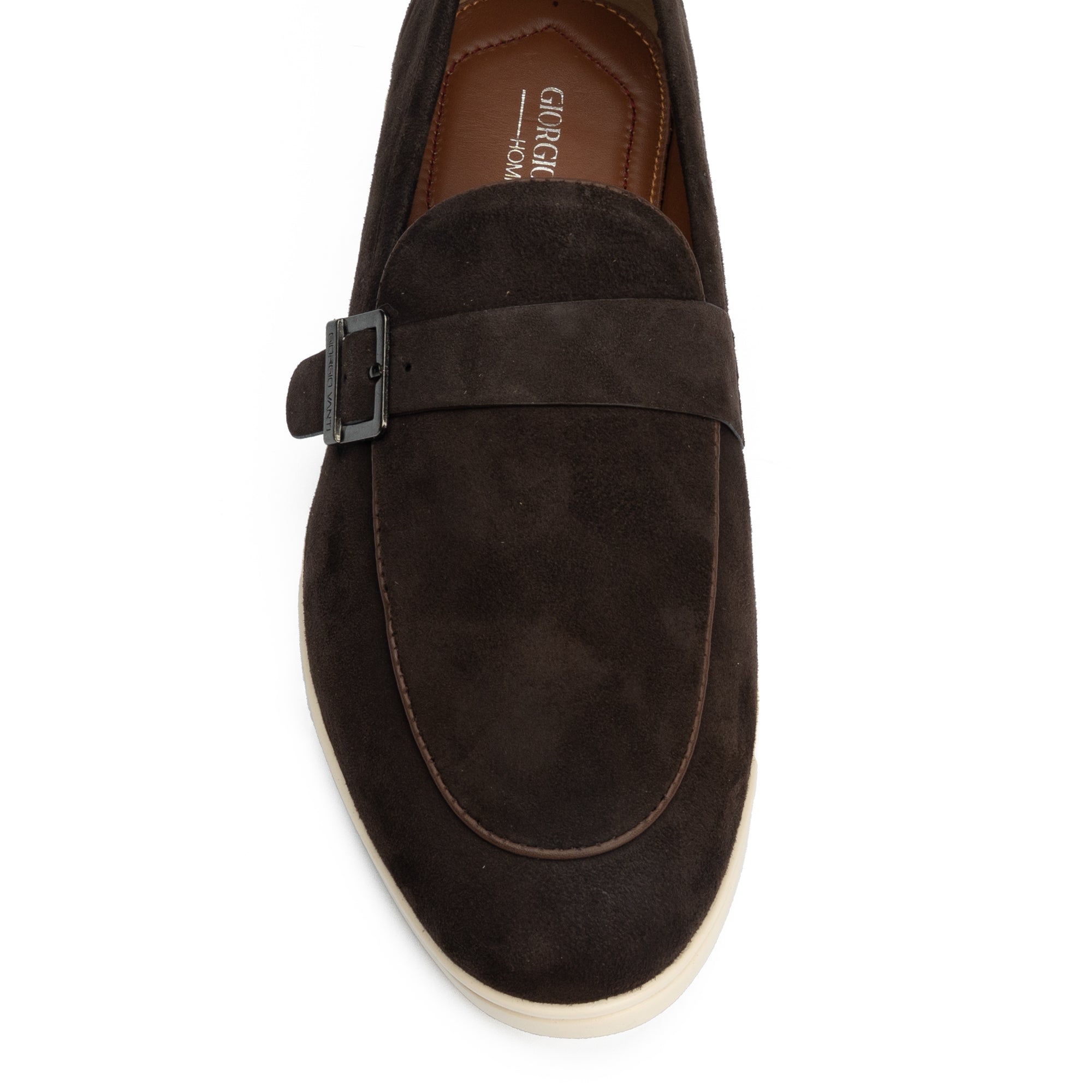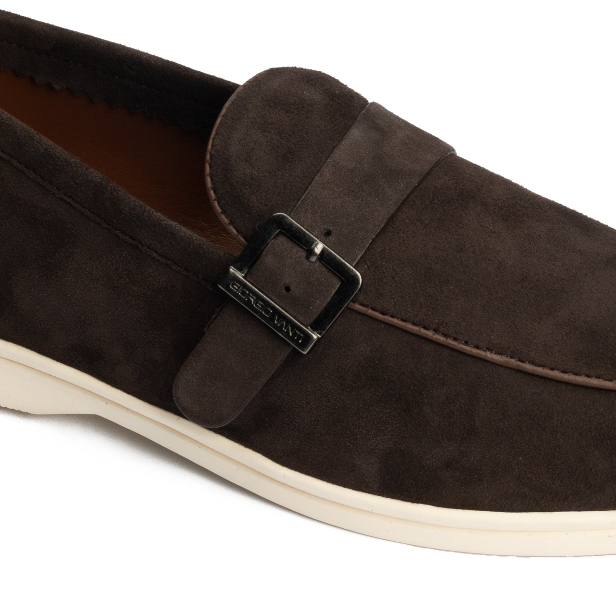 Crafted from rich suede with a sleek buckle, this shoe blends timeless style with modern comfort. Set on a lightweight white sole, it’s perfect for effortless all-day wear.