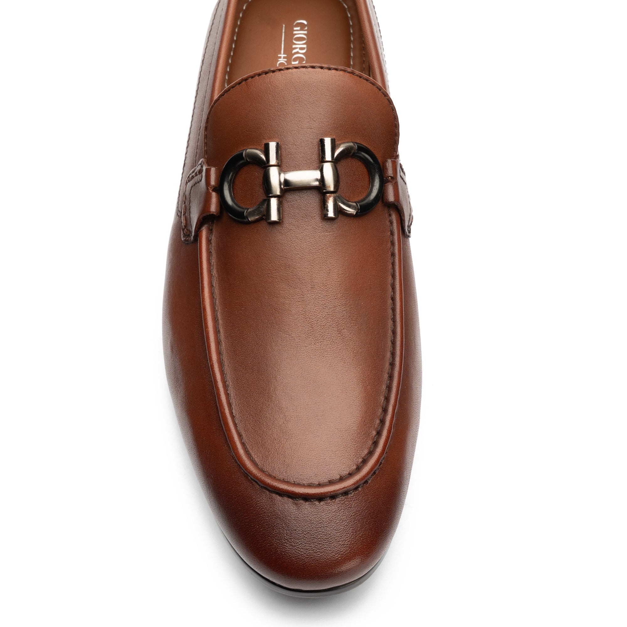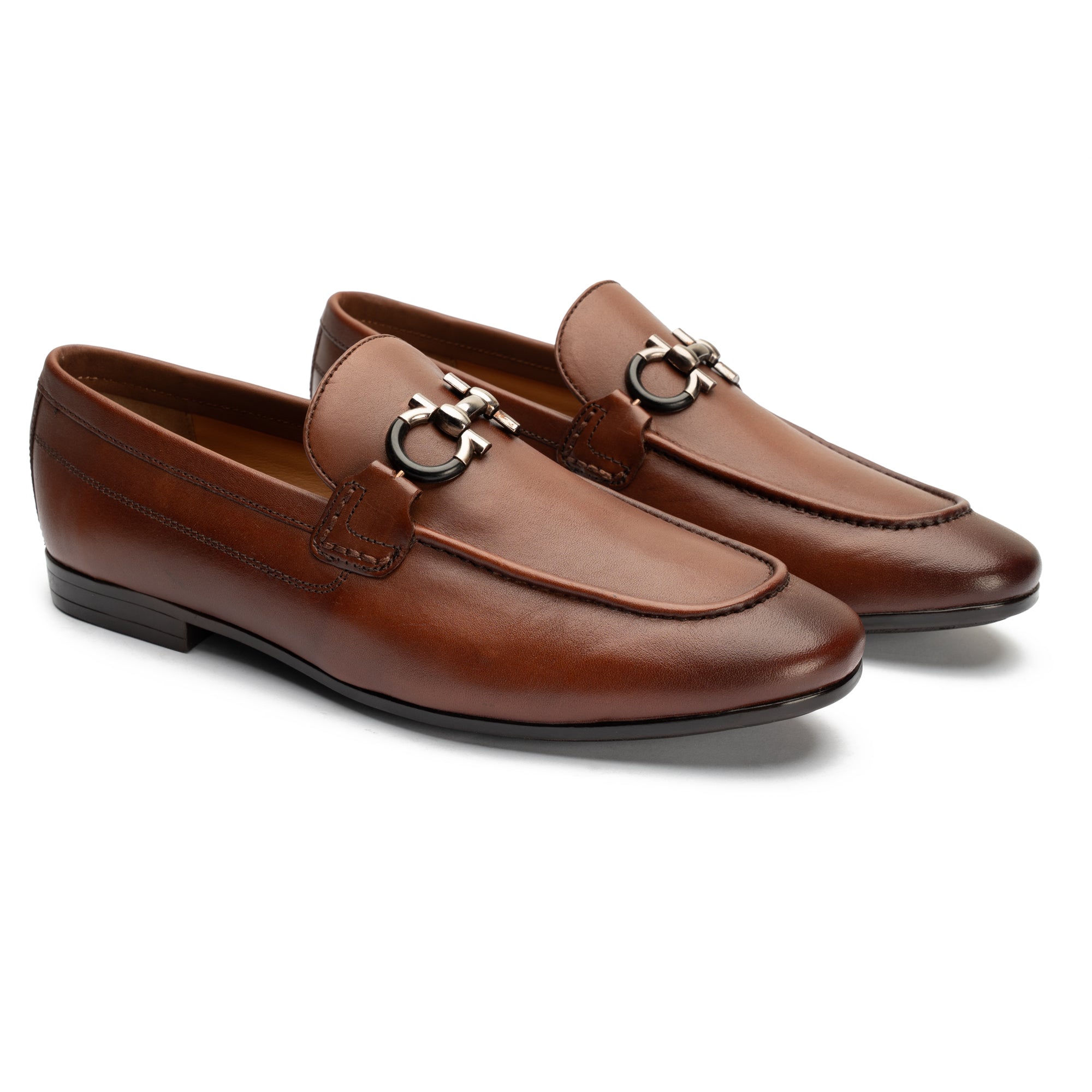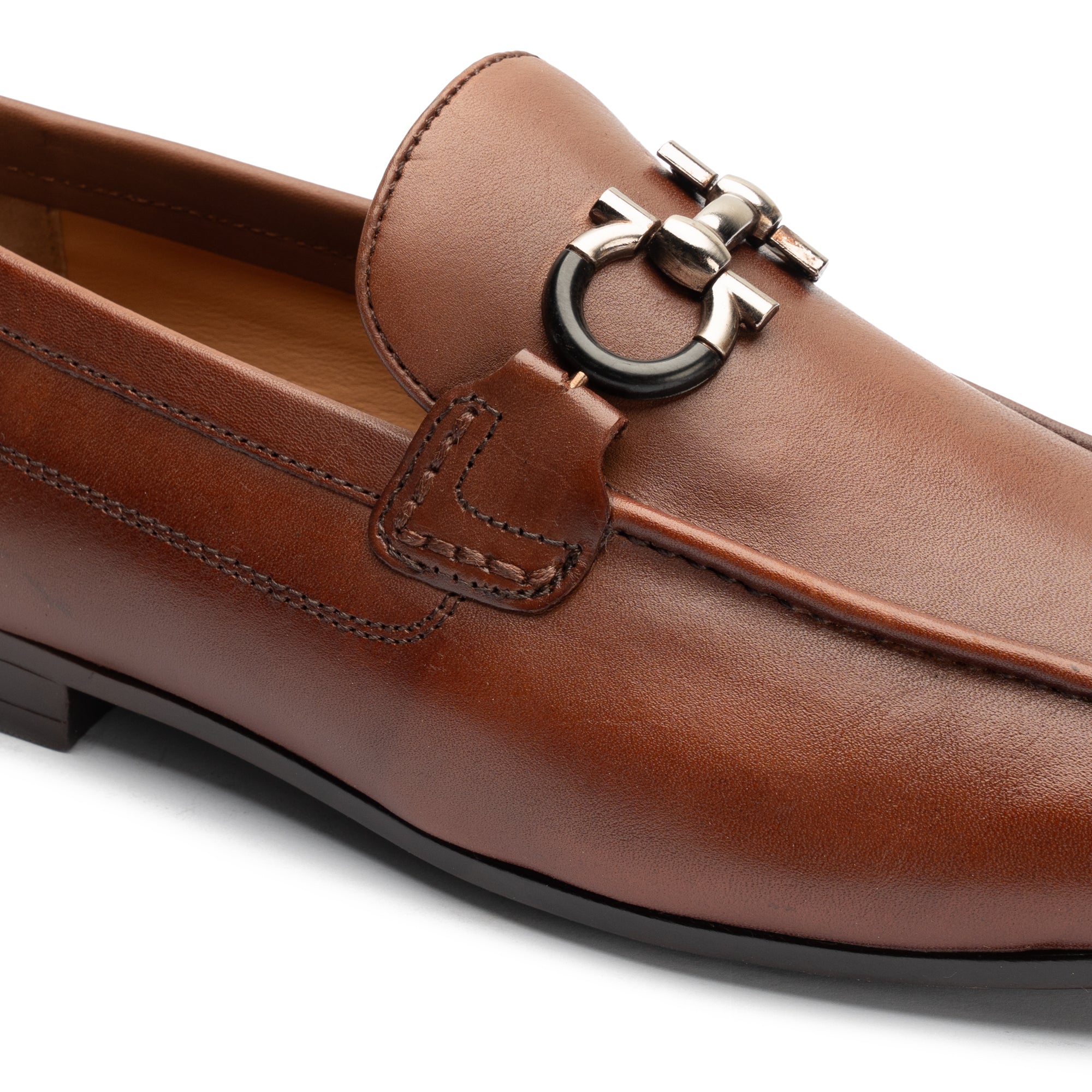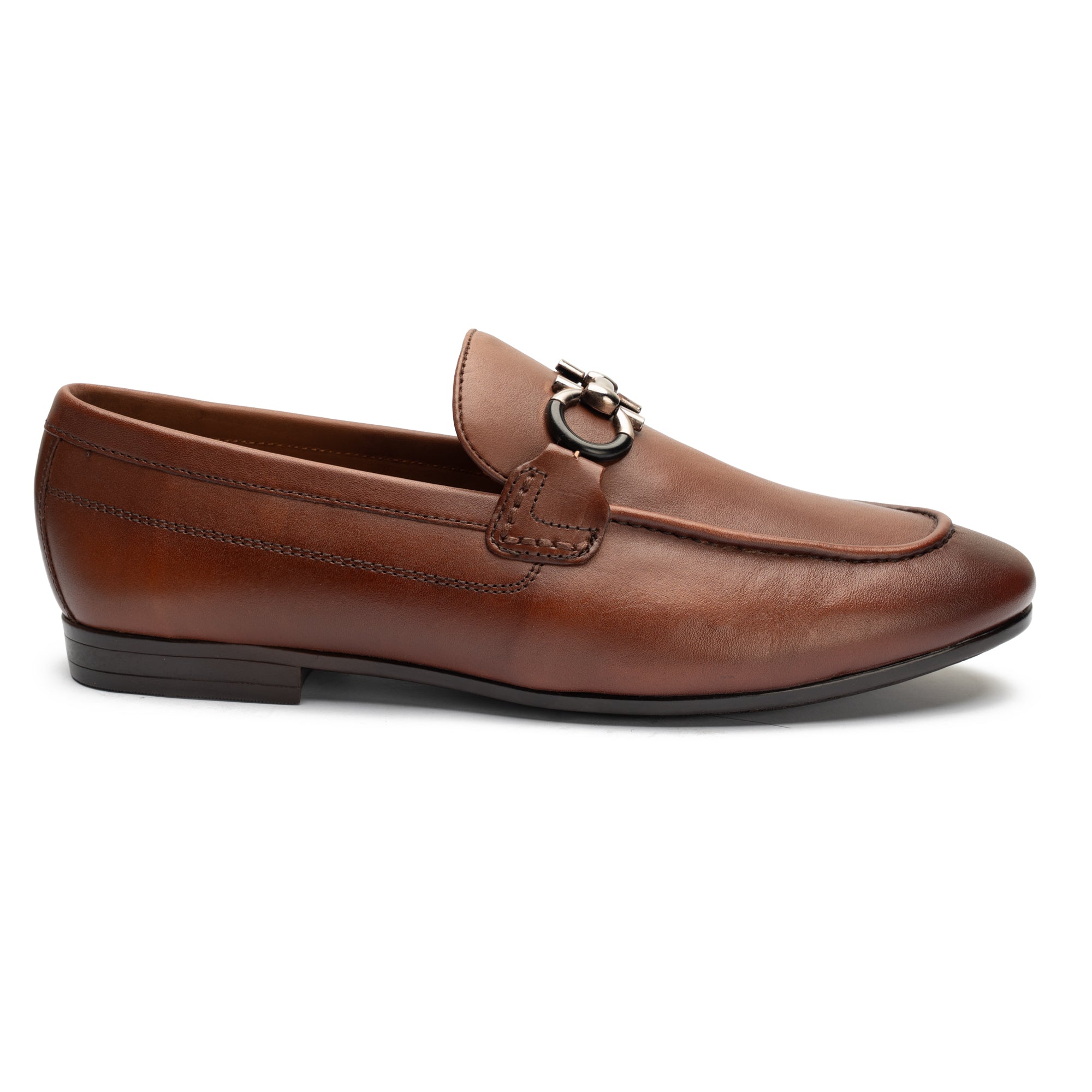 Sophisticated brown leather shoe featuring a sleek metal horsebit detail. Designed for refined elegance, they offer both timeless style and everyday comfort.