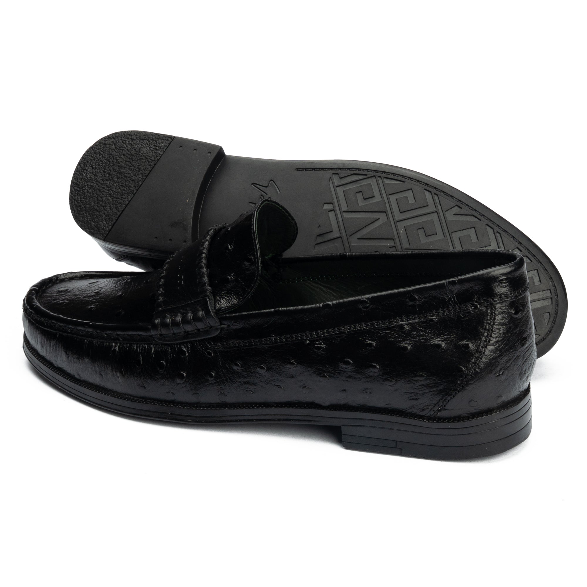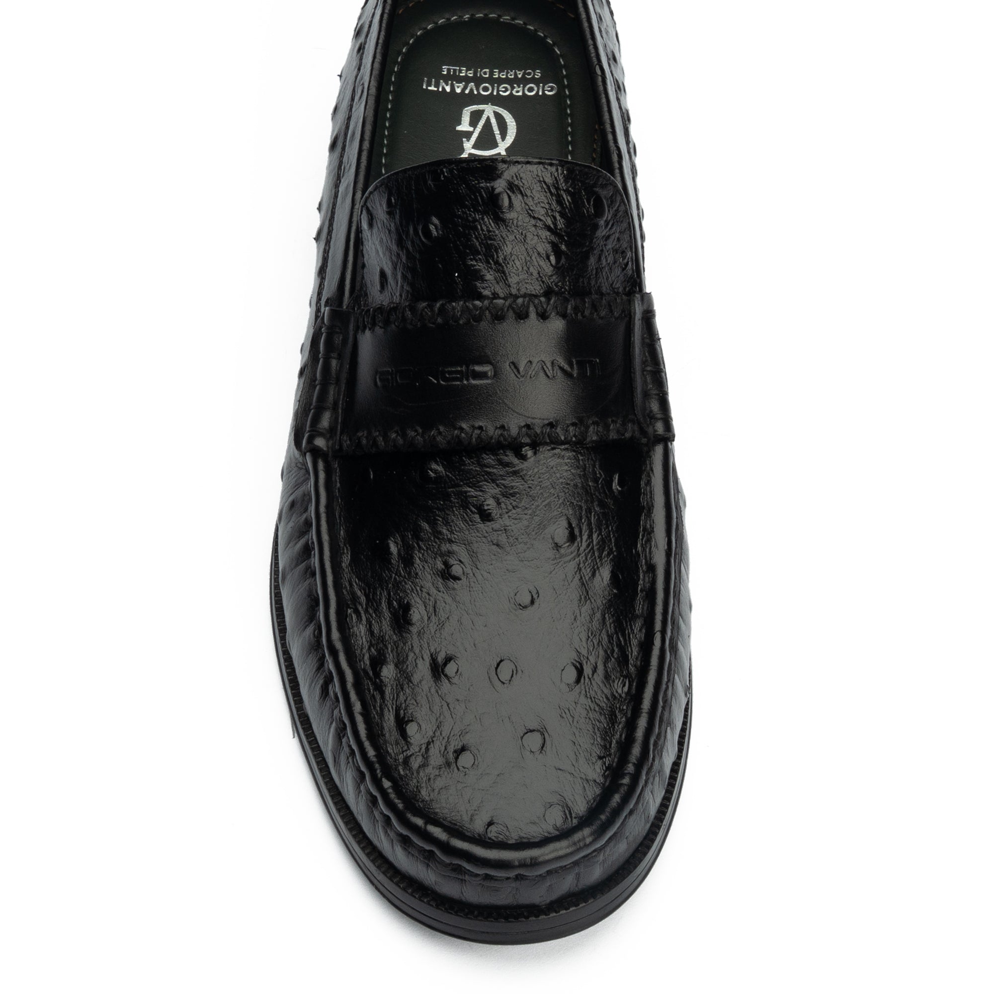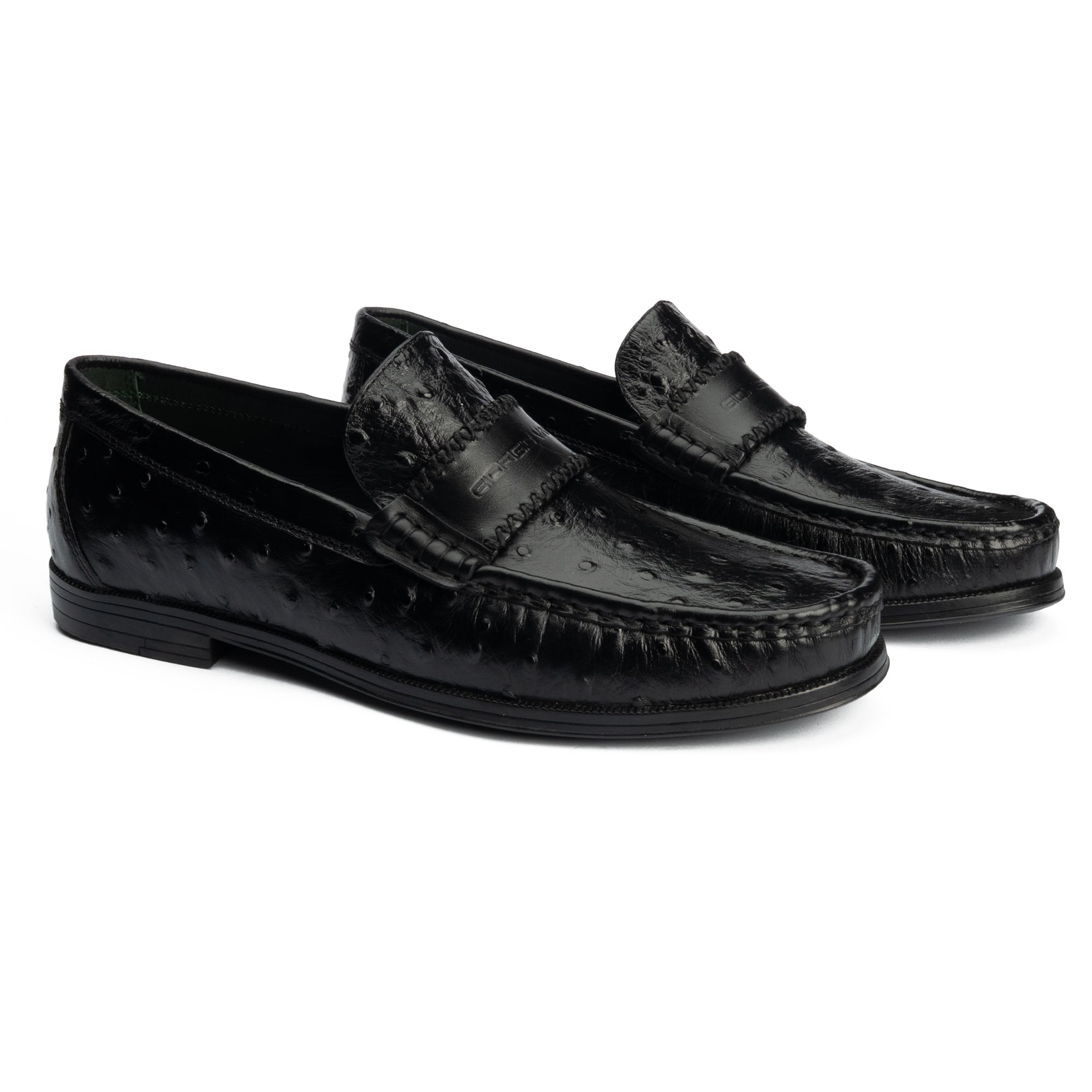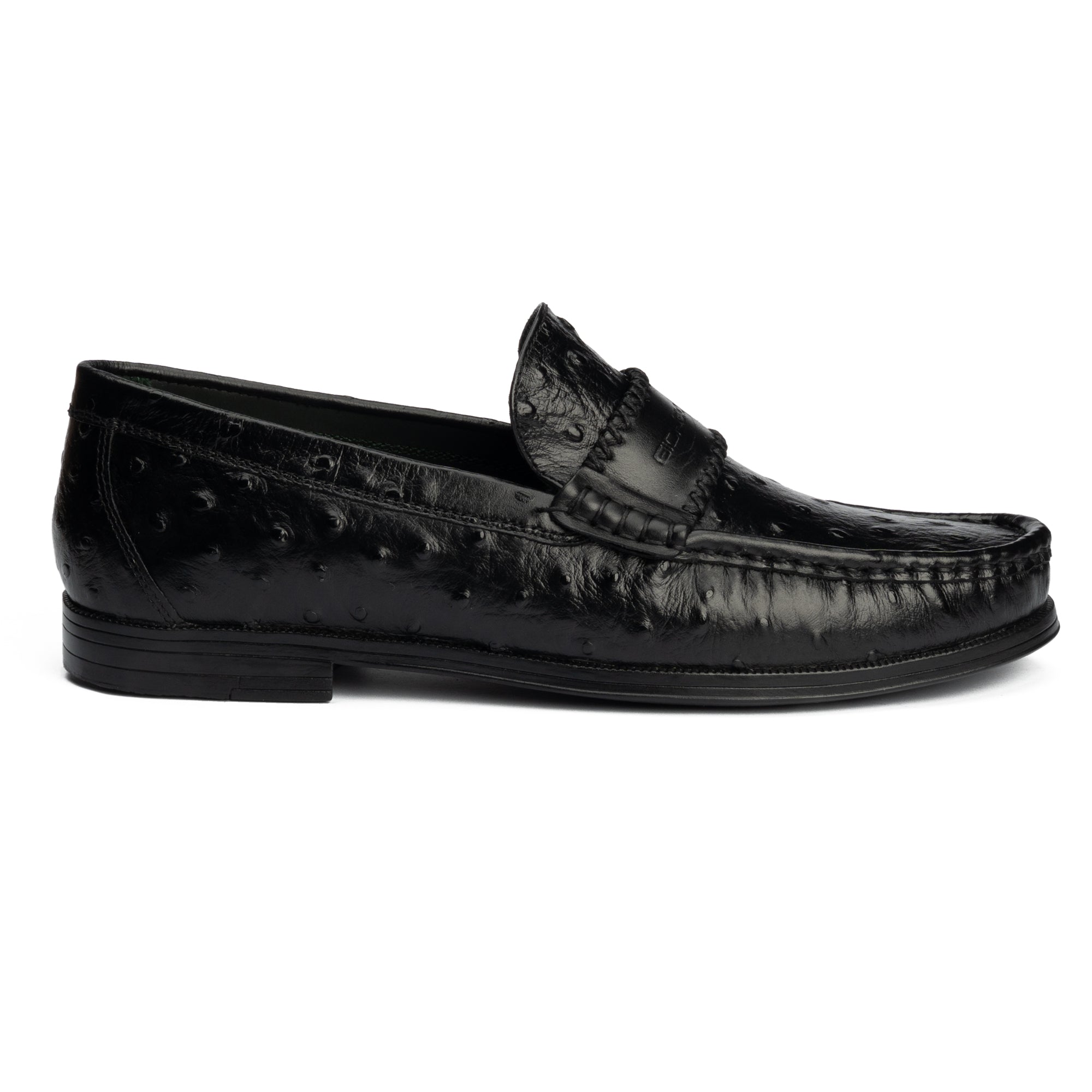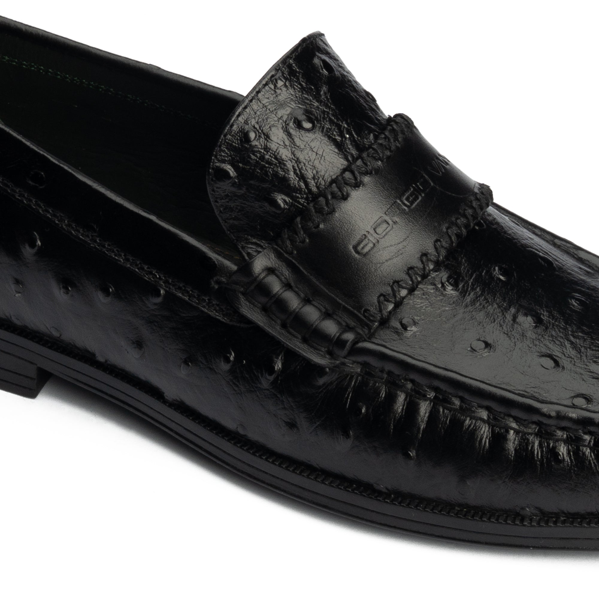 Polished black leather with rich texture, finished for a powerful, statement look.