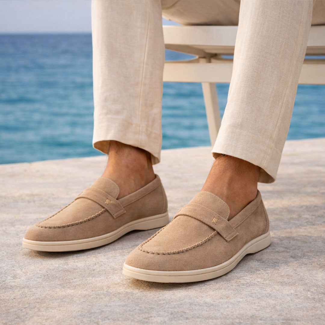 Soft cream suede shoe with white contrast sole — a perfect balance of casual comfort and refined elegance.
