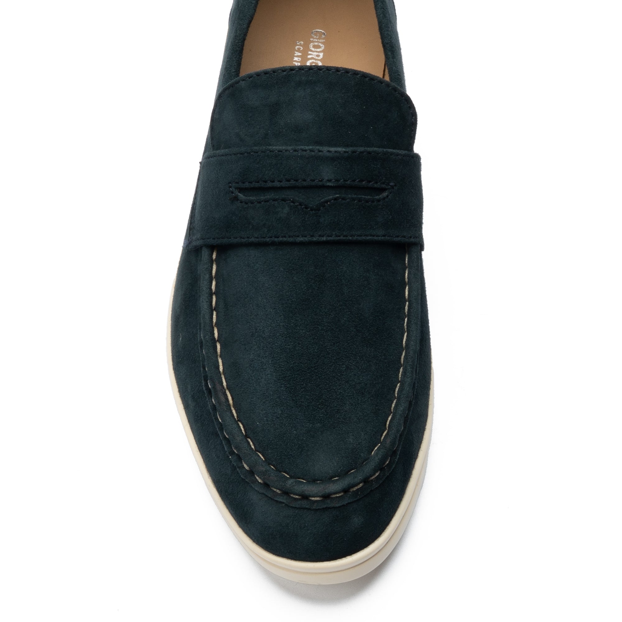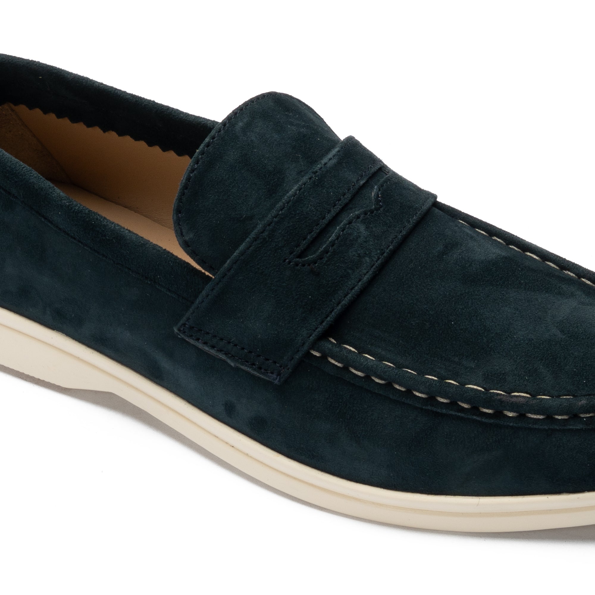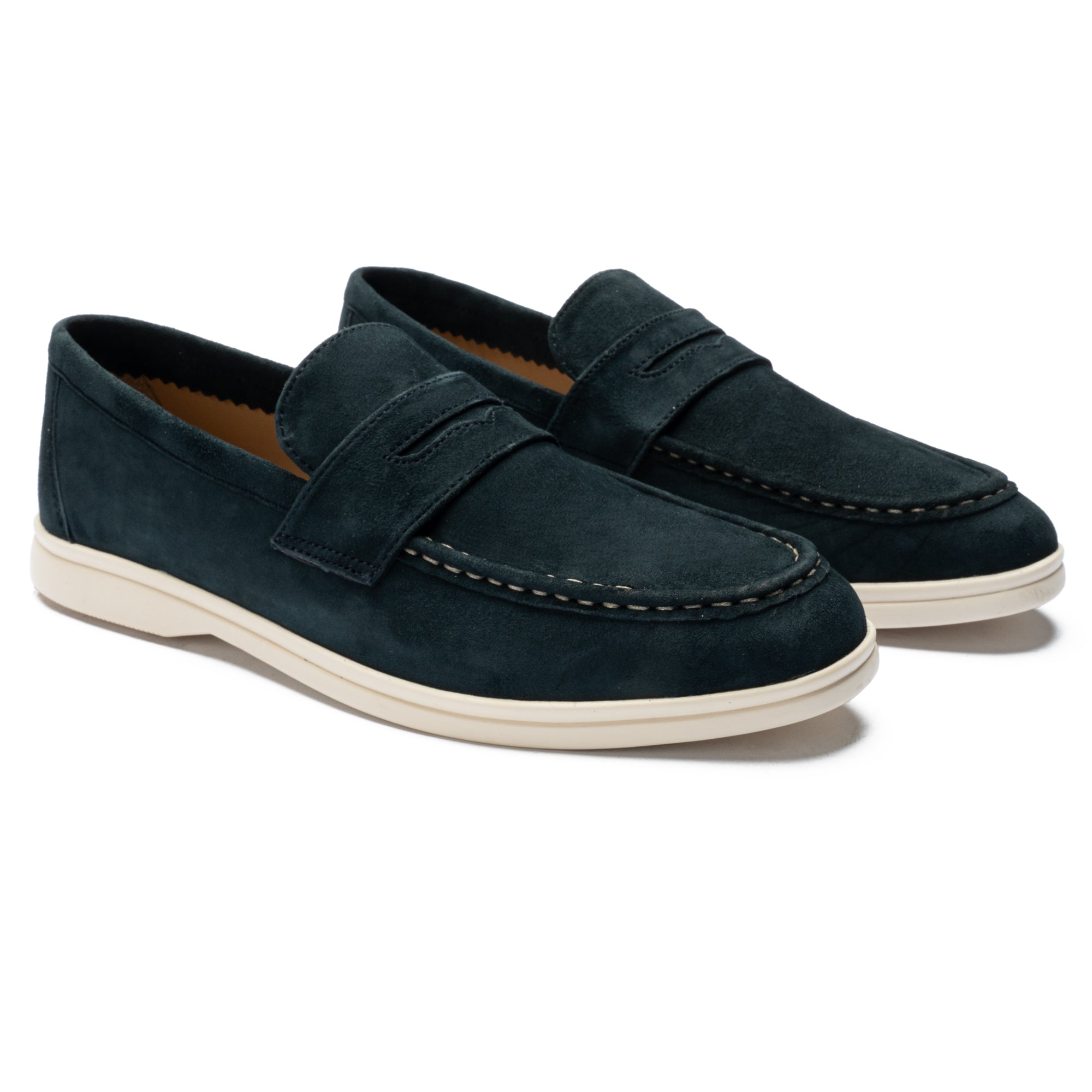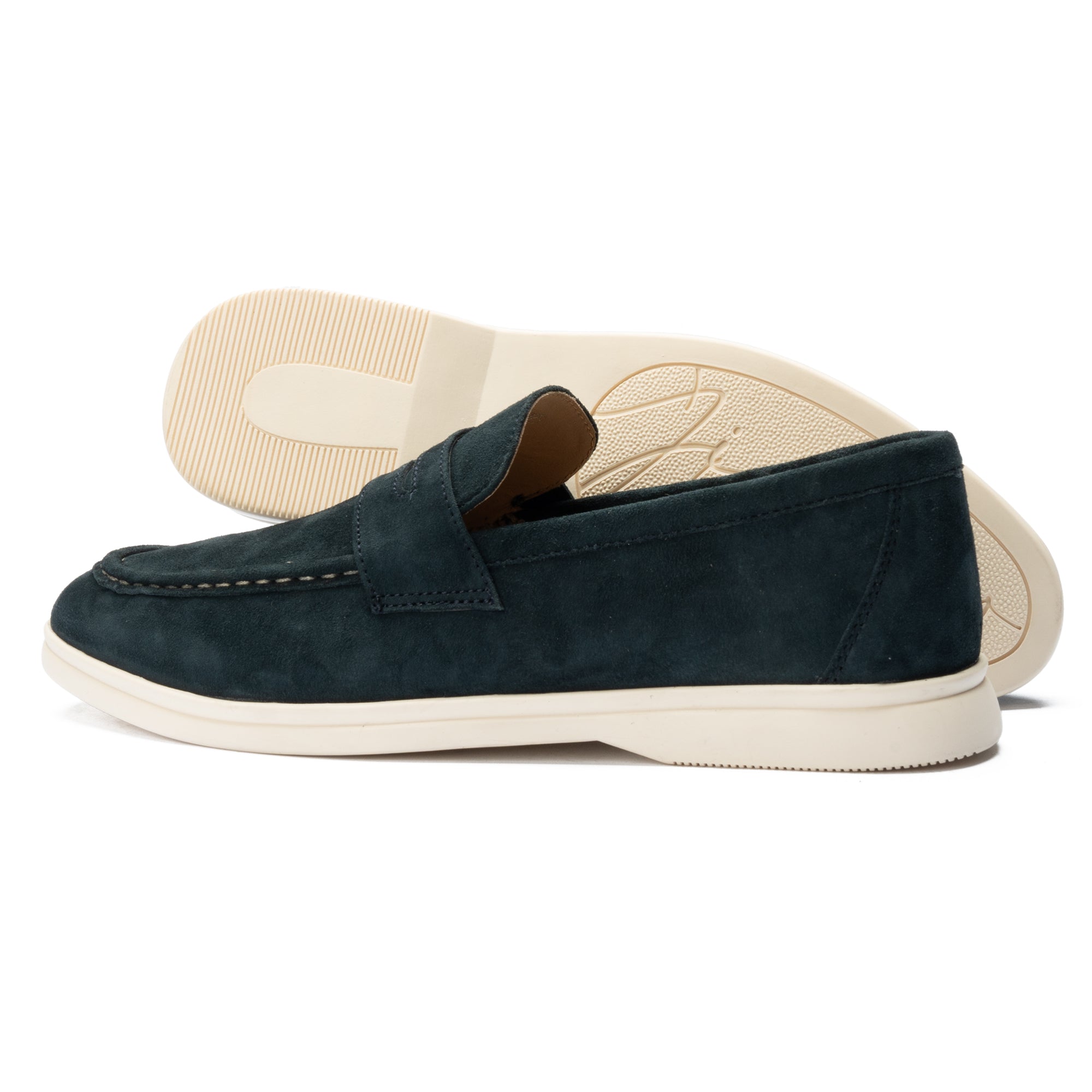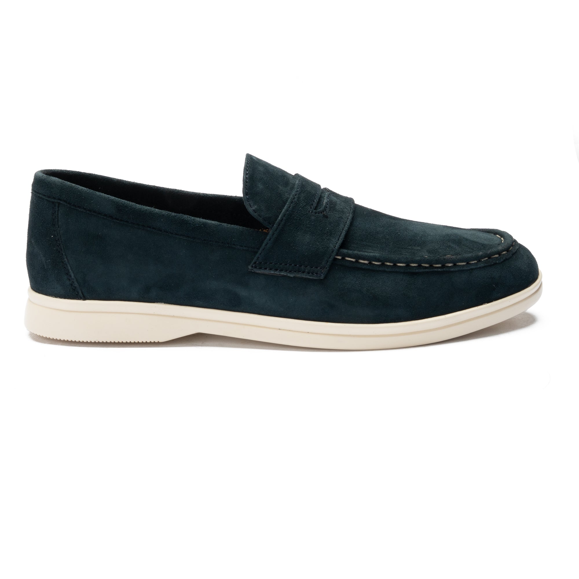 Soft blue suede shoe with white contrast sole and stitching — a perfect balance of casual comfort and refined elegance.